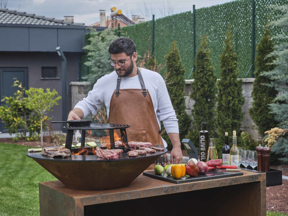 Der FAVILLA FLAME CORTEN ist der ideale Outdoor-Grill für stilvolle Genussmomente im Freien. Die großzügige Feuerschale mit integriertem Holzstauraum sorgt für ein komfortables Grillerlebnis mit Holzkohle oder Feuerholz. Der breite Grillring bietet mehrere Temperaturzonen – ideal für Fleisch, Gemüse oder Beilagen. Gefertigt aus langlebigem Corten-Stahl, entwickelt der FLAME mit der Zeit eine edle Patina und bleibt ganzjährig einsatzbereit. Inklusive gratis FAVILLA Grillrost für vielseitige Grillmöglichkeiten.